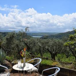 Rondom de villa is een ruim grondstuk van meer dan 13.000 m2, hier staan olijfbomen en vruchtenbomen, uiteraard is de privacy gewaarborgd. Vanuit de woning en de terrassen is er een prachtig panoramisch uitzicht, oa. op het Lago Angitola, een meer in het regionale natuurgebied Parco naturale regionale delle Serre. Ook is er genoeg ruimte om makkelijk een zwembad te realiseren. De villa bevindt zich op korte afstand van het stadje Pizzo, zee en strand.