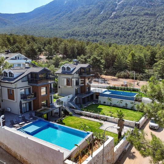5-Slaapkamer Luxe Villa met Zeezicht en Infinity Pool in Fethiye, TurkijeGelegen in de wijk Ovacık in Ölüdeniz, Fethiye, bevindt het project zich in een van de meest gewilde en toeristvriendelijke gebieden. Het wereldberoemde Ölüdeniz staat bekend als een van de belangrijkste toeristische bestemmingen van Turkije, met een prachtig blauw zee, unieke baaien en uitgebreide sociale voorzieningen. Dankzij de adembenemende natuurlijke schoonheid en uitstekende voorzieningen, staat Fethiye hoog op de lijst van plaatsen die mensen kiezen voor zowel vakanties als permanent wonen.Het project is ideaal gelegen op 500 meter van de Hisarönü Bazaar, waar je cafés, restaurants, markten en apotheken kunt vinden voor al je dagelijkse behoeften. De 5-slaapkamer villa ligt ook op slechts 1,5 km van de Babadağ Cable Car, 2 km van het prachtige Ölüdeniz-strand, 4 km van het oude Telmessos-theater en de Amintas-rotsgraven, 6 km van het Fethiye State Hospital en 49 km van de luchthaven Dalaman.Gelegen aan de voet van de Babadağ, biedt de villa te koop in Fethiye, Turkije een adembenemende sfeer, omgeven door serene dennenbossen, rustige plattelandslandschappen en een prachtig uitzicht op de turquoise wateren van Ölüdeniz in de verte. De tuin is een waar oase, met een privé infinity pool, een douchegedeelte en een ruime, zorgvuldig aangelegde tuin. Of je nu op zoek bent naar een vakantieverblijf voor je gezin, een permanent huis, of een woning met groot verhuurmogelijk, deze villa is gebouwd volgens de hoogste technische normen.De 5-slaapkamer villa met 240 m² interieur heeft ruime master slaapkamers, elk met een eigen privé badkamer. Op de begane grond bevinden zich twee master slaapkamers met en-suite badkamers die direct toegang geven tot de tuin, samen met een gesloten zwembad, een sauna, een Turks bad en een balkon. De eerste verdieping bevat een open keuken, een comfortabele tv- en ontspanningsruimte, directe toegang tot het infinity pool, de hoofdingang en twee ruime balkons. De tweede verdieping heeft twee master slaapkamers met en-suite badkamers, beide met toegang tot een groot dakterras. Op de bovenste verdieping vind je een master slaapkamer met een en-suite badkamer, een jacuzzi en een balkon met adembenemend zeezicht. BJV-00580
