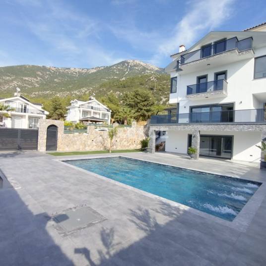 Stijlvolle Villa met Privé Zwembad in Fethiye Ovacık Fethiye is een bekende toeristische bestemming in Turkije. De regio trekt de aandacht van veel toeristen met fascinerende natuur, opvallende stranden en baaien. Naast natuurgeschenken is het beroemd om natuursporten zoals paragliding. Zelfs als toeristische trekpleister van nu, gaat het leven in de regio terug tot de vijfde eeuw.De villa te koop in Fethiye Turkije ligt in het Ovacık gebied van de wijk Ölüdeniz. De villa is omringd door stenen muren en de landschapsarchitectuur is voltooid op 500 m² grond en 300 m² gebruiksoppervlakte. In de tuin ligt een privézwembad van 45 m² met een jetsysteem, een natuurlijke waterval en een parkeerplaats.In het interieur heeft de villa een vloerverwarmingssysteem en bestaat uit een woonkamer en een groot terras dat de vloer op de begane grond volledig omringt. Op de tuinverdieping is er een zeer grote woonkamer geïntegreerd met een open keuken met een kookeiland, een grote patio en een patio van 30 m² aan de voorkant die geschikt is om te worden omgetoverd tot een wintertuin met een vloerverwarmingssysteem. Op de 1e en 2e verdieping zijn er 4 slaapkamers, elk met een eigen badkamer. De villa is geschikt voor vier seizoenen en is een goede investeringsmogelijkheid met zijn kenmerken en bouwkwaliteit, die allemaal bestaan uit eersteklas materialen. BJV-00450