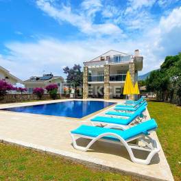 Gemeubileerde villa met 4 slaapkamers, privézwembad en tuin in FethiyeFethiye is een van de beste bestemmingen in Turkije voor zowel wonen als investeren, dankzij de zee en de natuurlijke schoonheid. Fethiye combineert modern wonen met een natuurlijke omgeving en biedt een rustige sfeer en uitstekende kansen voor investeerders. Ölüdeniz, gelegen in Fethiye, staat bekend om zijn beroemde strand, lagune en paragliden vanaf de Babadağ-berg. Met zijn prachtige stranden en uitzichten is de regio ideaal voor zowel zomervakanties als permanent wonen. Dankzij de nabijheid van sociale voorzieningen is Ölüdeniz ook een zeer aantrekkelijke locatie. Fethiye, Ölüdeniz is een uitstekende regio voor investeerders die op zoek zijn naar een prestigieuze levensstijl midden in de natuur.De villa te koop in Fethiye, Turkije is gelegen in de wijk Ovacık, op een centrale locatie. De villa ligt op 1 km van voorzieningen zoals markten en apotheken, 2 km van de dichtstbijzijnde school, 5 km van het strand van Ölüdeniz, 5 km van Kayaköy, 6 km van het paraglidinggebied van de Babadağ-berg, 7 km van winkelcentra, 8 km van het staatsziekenhuis, 9 km van het centrum van Fethiye en 55 km van de luchthaven van Dalaman.Deze vrijstaande villa met 4 slaapkamers is gelegen op een perceel van 820 m² en biedt een prestigieuze levensstijl midden in de natuur. De villa beschikt over een ruime en lichte indeling. In totaal zijn er 5 badkamers, waarvan elke slaapkamer een en-suite badkamer heeft. Daarnaast beschikt de woning over een zwembad, een ruime tuin en een overdekte parkeerplaats.De villa is uitgerust met moderne meubels en de open haard zorgt voor een warme en uitnodigende sfeer. Dankzij de nabijheid van Hisarönü en het strand van Ölüdeniz is de villa geschikt voor zowel gezinsleven als toeristische verhuur en biedt zij een sterke investeringskans. De luxe villa is geschikt voor krediet, wat dit tot een niet te missen investeringsmogelijkheid maakt. BJV-00665