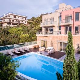 Deze prachtige villa aan de Atheense Rivièra biedt veelzijdigheid, luxe accommodatie, alle moderne voorzieningen en een adembenemend uitzicht op zee en de stad, op slechts een steenworp afstand van de bruisende levensstijl van Athene.De villa is ontwikkeld op een perceel van 852 m², verdeeld over vijf verdiepingen en bestaat uit twee maisonnettes en een appartement op de begane grond, met de volgende kenmerken:Maisonette 1: 212 m² – Onderste verdieping: woon-/eetkamer, keuken, badkamer, ruim balkon met uitzicht op zee. Bovenste verdieping: grote slaapkamer met en-suite badkamer, twee slaapkamers, badkamer, zeer ruim balkon met een prachtig uitzicht.Maisonette 2: 213 m² – Onderste verdieping: woon-/eetkamer, keuken, badkamer en ruim balkon met adembenemend uitzicht. Bovenste verdieping: twee grote slaapkamers met en-suite badkamers en ruim balkon.Appartement met zwembad: 145 m² – woon-/eetkamer, keuken, twee slaapkamers, twee badkamers en een WC.Op dezelfde verdieping als het zwembadappartement bevinden zich ook de fitnessruimte, het stoombad en de douche, wat gedeelde faciliteiten van de villa zijn.Het middelpunt van de aangelegde tuinen met verschillende niveaus van de villa is het zwembad van 8,30 x 11,50 m, dat eenvoudig kan worden omgebouwd tot een verwarmd zwembad.De villa beschikt ook over een gesloten garage voor drie voertuigen, drie bergingen van 20 m² en een kelder van 95 m². Alle kozijnen zijn voorzien van dubbele beglazing, op maat gemaakt en uitgerust met elektrische rolluiken en vliegenhorren. Twee van de badkamers hebben een jacuzzi, terwijl alle drie de keukens volledig zijn ingericht en uitgerust met ovens, elektrische en gasfornuizen en koelkasten.De veiligheids- en beveiligingssystemen van de villa omvatten hekken, alarmen, een CCTV-systeem en een speciaal brandbestrijdingssysteem dat het water van het zwembad gebruikt om branden te bestrijden.VerhuurmogelijkhedenDe veelzijdigheid, locatie en voorzieningen van het pand maken het ideaal voor kortetermijnverhuur tegen een aantrekkelijke prijs en gedurende het hele jaar.Locatie – AfstandenPalea Fokea ligt aan de Atheense Rivièra, die zich uitstrekt langs de kustlijn van de Saronische Golf, van Piraeus tot Sounion. Minuten verwijderd van de drukte van de hoofdstad, biedt de Atheense Rivièra een sereen landschap afgewisseld met palmbomen, verschillende stranden, sommige georganiseerd, een keuze aan goede restaurants en tavernes voor elke smaak en budget, evenals vele cafés, winkels en andere attracties. Het zuidelijke uiteinde wordt gedomineerd door de Tempel van Poseidon in Sounion, en ook opmerkelijk is het Hellenikon Metropolitan Park, een groot project in aanbouw met een jachthaven, een casino, winkels en een van de grootste stadsparken van Europa.Palea Fokea Strand: 2,5 kmThymari Strand: 5,5 kmLagonisi: 15 kmTempel van Poseidon, Sounion: 20 kmInternationale luchthaven Athene: 31 kmAthene Centrum (Akropolis): 48 kmHaven van Piraeus: 50 km