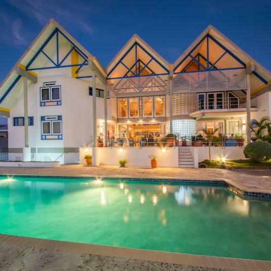 Op de top van de meest prominente heuvel in de befaamde wijk Jan Thiel prijkt deze uitzonderlijke villa, ontworpen door de gerenommeerde architect Dennis Klaus.
