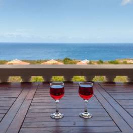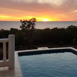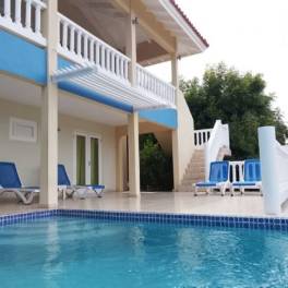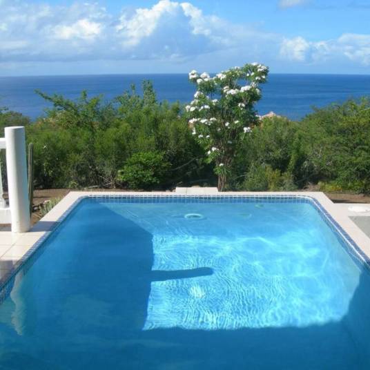De woonkamer is voorzien van grote schuifdeuren die een open verbinding naar het balkon creëren. Dit balkon biedt een adembenemend panoramisch uitzicht van 180 graden over de Caribische Zee. Een buitentrap leidt vanaf het balkon naar het terras en het zwembad, dat een afmeting heeft van 3×5 meter. Hier kunt u genieten van een verfrissende duik en genieten van de Caribische zon, omgeven door het prachtige landschap van Coral Estate. Want Coral Estate staat bekend om zijn natuurlijk aanleg en vele groenstroken ( die dus ook groen blijven en niet bebouwd mogen worden).