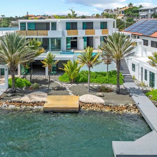 Gelegen in de prestigieuze jachthavencommunity van Jan Sofat, aan het prachtige Spaanse Water, biedt deze strakke, moderne villa een ruime privésteiger en aanlegplaats.