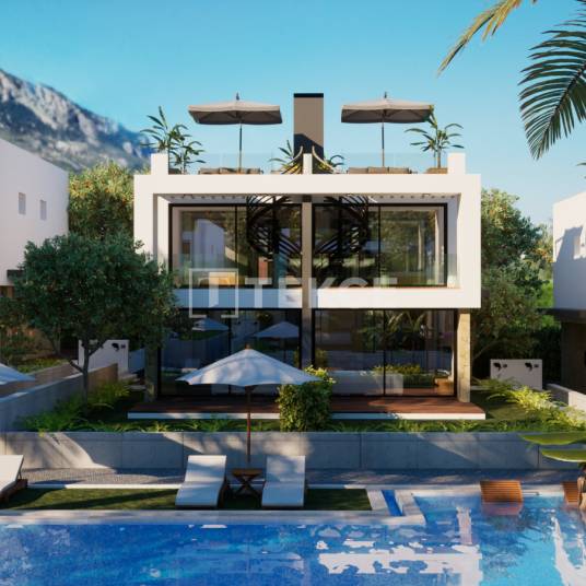 Villa’s in een rustige omgeving in Noord-Cyprus, Girne Op een steenworp afstand van het strand en de zeeLapta ligt aan de westkant van het noordelijke deel van een van de grootste eilanden in de Middellandse Zee. Lapta is nu erg populair vanwege de korte afstand tot de zee en de winstgevende investeringsmogelijkheden. Met ongeveer 330 dagen zon per jaar, zandstranden, blauw zeewater, een verbeterende sociale sfeer en diverse amusementsvoorzieningen trekt Lapta veel investeerders aan. Het gebied biedt verschillende sociale settings, restaurants, bars en faciliteiten voor kinderen.De villa’s te koop in Noord-Cyprus Girne liggen in Lapta. De villa’s liggen op 20 m van het strand en restaurants, 950 m van de jachthaven van Lapta, 1,8 km van de kleuterschool van Lapta, 2,5 km van het wandelpad langs de kust, 2,8 km van een gezondheidsinstituut, 4,9 km van het Necat British College, 15 km van het centrum van Girne, 31 km van Lefkoşa, 54 km van de internationale luchthaven Ercan en 99 km van de internationale luchthaven van Larnaca.Het project op 9.000 m² grond heeft in totaal 17 blokken. Elke villa in het vrijstaande project heeft een eigen parkeerplaats. Er zijn 2 zwembaden, een overdekt zwembad, speeltuinen, een sauna, een fitnessruimte, een bar, een café, een conferentieruimte, een werkruimte, een speelkamer, dakterrassen en veel sociale activiteiten in het complex, samen met verhuur management service. Het complex biedt ook een veiligheidsbarrière bij de ingang. Het complex met een diameter van 800 m is ook verrijkt met elektrische oplaadpunten, lounges en generatoren, samen met een prachtig uitzicht op zee en de bergen.Het project biedt 2+1 geschakelde villa’s en 4+1 vrijstaande villa’s die smaakvol zijn ontworpen in Scandinavische bouwstijl. De villa’s zijn uitgerust met keukenkasten, internetinfrastructuur, een centraal satellietsysteem en airconditioners.Het project biedt je een ideale investeringskans als je een villa wilt kopen in Noord-Cyprus! ECN-00337
