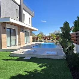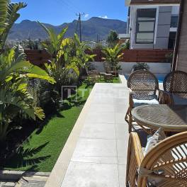Gemeubileerde Vrijstaande Villa met een Ruime Tuin in Catalkoy Girne, een van de meest gewilde regio’s van Noord-Cyprus, onderscheidt zich door zijn natuurlijke schoonheid, kustlijn en voorzieningen. Het gebied Catalkoy valt op door de harmonieuze combinatie van bergen en zee, de goed geplande indeling en de rustige sfeer. De regio biedt een evenwichtige levensstijl, met zowel nabijheid tot het stadscentrum als een leven midden in de natuur.Deze villa te koop in Girne Noord-Cyprus ligt op 350 meter van de hoofdweg Girne–Catalkoy, 650 meter van de zee, 2 kilometer van Coco Bongo Strandclub en Final Internationale Universiteit, 3 kilometer van Doğa Internationale School, 4 kilometer van Dr. Suat GunseI Ziekenhuis en Girne Universiteit, 6 kilometer van het stadscentrum van Girne, 33 kilometer van de luchthaven Ercan en 85 kilometer van de luchthaven Larnaca.De villa bevindt zich in een complex in Catalkoy. De villa, met een individuele eigendomstitel die klaar is voor overdracht, is gelegen op een perceel van 430 vierkante meter en is ongeveer drie jaar oud. De volledige tuin is aangelegd en beplant met bomen, en het zwembad is volledig operationeel en klaar voor gebruik. Er is ook een buitenzitgroep, een schommel en tuinmeubilair aanwezig.De villa is ontworpen met een indeling van 4 slaapkamers en beschikt op de begane grond over een gastenslaapkamer met en-suite badkamer, terwijl de bovenverdieping de hoofdslaapkamer met en-suite badkamer en de overige leefruimtes omvat. De villa biedt ruime en functionele interieurs, met een open keuken en een lichte woonkamer als blikvangers. Het interieur is uitgerust met de nieuwste Bosch huishoudelijke apparaten, een Samsung televisie en hoogwaardig meubilair. Comfort gedurende het hele jaar wordt gegarandeerd door airconditioningsystemen en een centraal verwarmingssysteem ondersteund door een warmtepomp. Alle gordijnen, accessoires en interieurafwerkingen zijn inbegrepen, en de villa wordt volledig gemeubileerd en instapklaar te koop aangeboden. ECN-00596