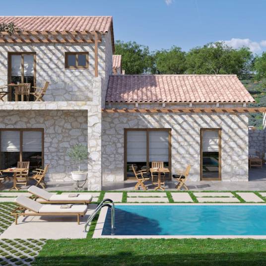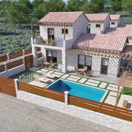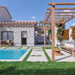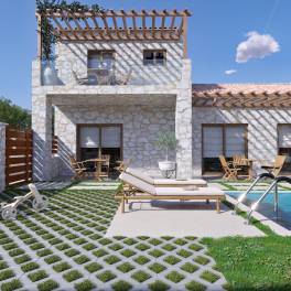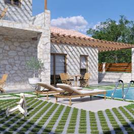 Three new yet traditional stone cottages with private pools and gardens, designed on a thoughtfully selected plot. On one side, the traditional village of Perdika is just a short drive away. At the same time, the stunning beaches of Arillas, Karavostasi, and the Mar-Bella Resort offer cosmopolitan seaside escapes.