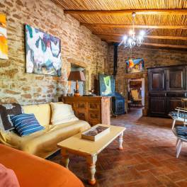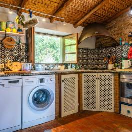 Binnen verwelkomt de villa u met warmte en karakter. Er zijn drie slaapkamers met eigen badkamer, elk met een eigen doucheruimte en inbouwkasten, behalve één, een klein kantoor en een gastentoilet. De volledig ingerichte keuken loopt naadloos over in de woonruimtes, waar u de ziel van het huis ontdekt: Santa Catarina-tegelvloeren, gepolijste stenen muren, lage traditionele deuropeningen en een Algarve-open haard die vroeger werd gebruikt om gezinsmaaltijden te bereiden, maar nu een gezellig hoekje is om te lezen of rustige avonden door te brengen bij het vuur. Houten ramen en deuren met eenvoudig glas maken het plaatje van tijdloze Portugese charme compleet.