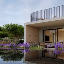 Elke villa is privé en onafhankelijk, gelegen op royale percelen van 816 m² en 928 m², en gebouwd met CLT-technologie van de volgende generatie voor uitzonderlijke energieprestaties, natuurlijk comfort en verfijnde moderne esthetiek.
