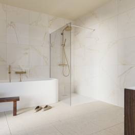 Deze 2-persoons recreatiewoning beschikt over een en-suite wellness badkamer met luxe materialen, een bubbelbad, inloop regendouche, sunshower en dubbele wastafel met verlichte designspiegel. Perfect voor stellen die op zoek zijn naar een exclusieve wellnesservaring.