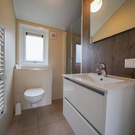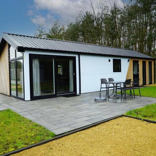 Concept – Comfort van binnen en buiten, daar staat deze 4-persoons vakantiewoning voor. De mooie locatie met uitzicht over de tuin bindt de ogen elke dag weer op prettige wijze, daarnaast is de woning zelf ook onderscheidend. Zowel van binnen als buiten zijn onderhoudsvriendelijke materialen gebruikt, verder is ze volledig geïsoleerd en voorzien van dubbele beglazing. De grote ramen verschaffen u elke dag weer een mooie aanblik over het ‘groen’ wat het gevoel van rust en ruimte, waar een vakantie veelal voor staat, versterkt. Datzelfde doet ook het terras aan de voorzijde van de vakantiewoning.