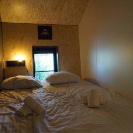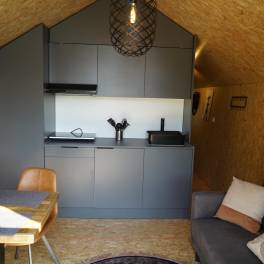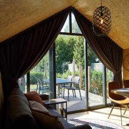 Solo Retreat 4 – De Solo Retreat 4 biedt alle comfort op een klein aantal vierkante meters. Het chalet is gelijkvloers en is geschikt voor 4 personen. In de modern ingerichte woonruimte vindt u een zithoek met televisie, een eettafel met stoelen en een keuken, die onder andere voorzien is van een inductiekookplaat, een waterkoker en koffiezetapparaat. Solo Retreat 4 heeft 2 slaapkamers met 2 eenpersoonsbedden en een badkamer die voorzien is van een regendouche, wastafel en toilet. Buiten geniet u van een eigen terras met tuinset.