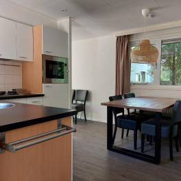 L’Avenir – L’Avenir 6 is een vrijstaand en gelijkvloers chalet dat plaats biedt aan 6 personen. De woonkamer heeft een gezellige zithoek met televisie. Verder is er een aparte eethoek aanwezig. In de keuken vindt u onder andere vaatwasser, combimagnetron en een koffiezetapparaat. Er zijn in totaal 3 slaapkamers, waarvan 2 slaapkamers met twee eenpersoonsbedden en 1 slaapkamer heeft een stapelbed. De badkamer is uitgerust met een douche, wastafel en toilet. Buiten kunt u heerlijk genieten op het terras met een tuinset. Bij l’Avenir 6 kunt u 1 auto parkeren en er is gratis wifi beschikbaar.