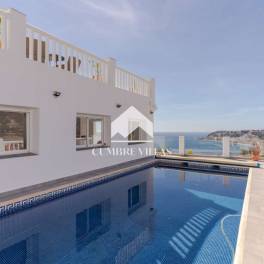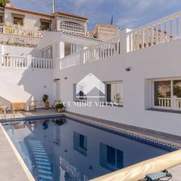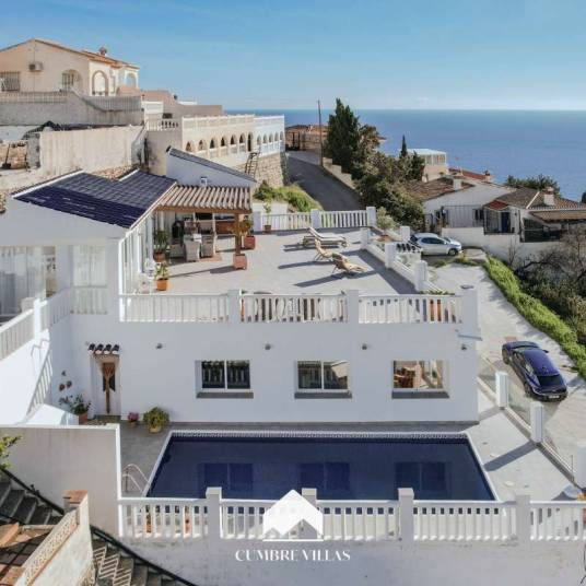 Cumbre Villas presenteert deze zuidwestelijk georiënteerde villa te koop, gelegen op een heuvel in Almuñécar met prachtig zeezicht. Het perceel is 450 m² groot en de villa telt verdiepingen met een bebouwde oppervlakte van circa 350 m². De woning werd gerenoveerd in 2019 en is instapklaar. Het pand beschikt over een garage op straatniveau. Op de hoofdverdieping bevindt zich een open woon- en eetkamer met keuken, twee slaapkamers, een badkamer, een gastentoilet en wasruimte, evenals een ruim zwembad met terras. Op de bovenverdieping bevindt zich een royaal dakterras van meer dan 100 m² met barbecue en pergola, samen met een slaapkamer, een dressing van 12 m² en een badkamer. Deze verdieping kan eenvoudig worden ingericht als zelfstandig appartement dankzij de onafhankelijke toegang. Door het toevoegen van een keuken zou de ruimte zelfs gebruikt kunnen worden voor vakantieverhuur, of de ruimte kan worden ingericht als speelkamer, studio of zomerkeuken met lounge. De villa ligt vlak bij zee en Almuñécar, terwijl de luchthaven van Granada, het skigebied Sierra Nevada en de luchthaven van Málaga allen binnen ongeveer één uur per auto bereikbaar zijn. Neem contact op met Cumbre Villas voor meer informatie of om een bezichtiging te plannen.