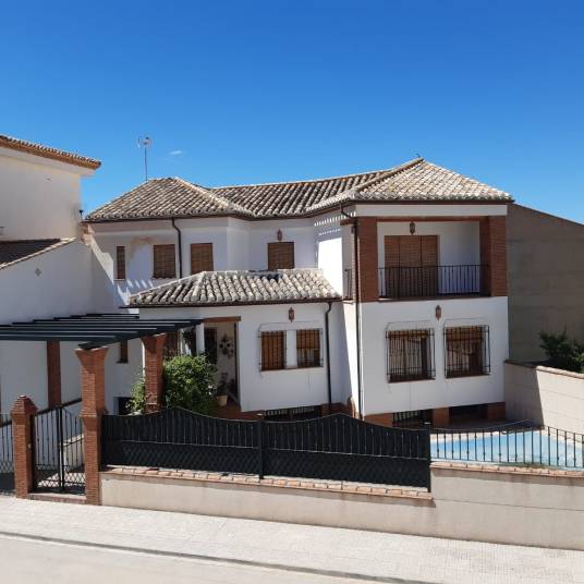 Deze charmante en karaktervolle stadsvilla in Huéscar biedt volop ruimte, comfort en authentieke details. Bij binnenkomst valt direct de prachtige, originele voordeur op, rijk aan karakter en stijlvolle accenten.De ruime hal leidt naar een gezellige woonkamer met een apart eetgedeelte. Op deze verdieping bevindt zich ook een multifunctionele kamer die ideaal is als slaapkamer, thuiskantoor of studeerkamer. Daarnaast is er een royale extra kamer met voorraadkast en een praktische bijkeuken voor onder andere de wasmachine. Verder vindt u hier een gastentoilet met douche en toegang tot een sfeervolle, kleine patio.Op de eerste verdieping bevinden zich vier ruime slaapkamers, een complete badkamer en een tweede patio met openslaande deuren – perfect voor een moment van rust in de buitenlucht.De zeer royale kelder/garage is een absolute verrassing: hier vindt u een volledig ingerichte keuken met open haard, ideaal voor gezellige diners met familie en vrienden – plaats voor zeker 10 personen! Bovendien is er voldoende ruimte om een werkplek of hobbyruimte te creëren. De garage biedt plaats aan minimaal twee auto’s.Uniek voor een stadsvilla: een privézwembad van maar liefst 16 m² aan de voorzijde van het huis – een heerlijke plek om te ontspannen en te genieten van het Spaanse klimaat, midden in de stad.Toplocatie – alles binnen handbereikGelegen aan een rustige straat bevindt deze woning zich op een uitstekende locatie. Supermarkten, winkels, cafés, restaurants, een wekelijkse markt, scholen, apotheken en medische voorzieningen zijn allemaal op loopafstand. Ook het stadspark, sportfaciliteiten en diverse wandelroutes liggen vlakbij, wat zorgt voor een comfortabel en zorgeloos dagelijks leven.Centrale ligging met goede bereikbaarheidHuéscar ligt in het noorden van de provincie Granada en is goed bereikbaar vanuit meerdere richtingen. Hoewel het een rustige en authentieke stad is, bent u binnen afzienbare tijd in grotere steden en bij diverse voorzieningen:Grote steden in de buurt:Granada – ca. 1 uur en 45 minuten rijden. Prachtige historische stad met een luchthaven, winkelcentra, ziekenhuizen en cultuur.Murcia – ca. 1 uur en 40 minuten. Gezellige stad met veel voorzieningen en een internationaal vliegveld.Lorca – ca. 1 uur rijden. Middelgrote stad met ziekenhuis, universiteit en uitgebreide winkelmogelijkheden.Baza – op slechts 45 minuten afstand, met supermarkten, restaurants, medisch centrum en weekmarkt.Vliegvelden:Granada Airport – ca. 1 uur en 45 minutenMurcia-Corvera Airport – ca. 2 uurAlmería Airport – ca. 2 uurAlicante Airport – ca. 2 uur en 15 minutenNatuur ontspanning:Embalse de San Clemente Embalse del Negratín – Twee grote meren in de regio, ideaal om te zwemmen, kajakken of te picknicken.De Sierra de Castril Sierra de la Sagra – Prachtige natuurgebieden voor wandelingen, wild spotten en frisse lucht.De kust (Costa Cálida / Costa Almería) – Binnen 2 à 2,5 uur rijden bent u aan zee, waar u kunt genieten van de stranden, visrestaurants en de gezellige kustdorpen.Kortom: een rustige woonomgeving in Huéscar met alle dagelijkse voorzieningen om de hoek én de luxe van goede verbindingen naar stad, strand en natuur.Deze unieke stadsvilla combineert authentieke charme met moderne leefruimte – een zeldzame kans in het hart van Huéscar!