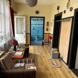 In de woning de hal, woonkamer, 2 slaapkamers, de keuken met bijkeuken en de badkamer. Verder nog een kamer met een aparte ingang.