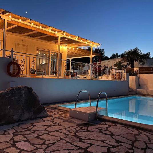 BeschrijvingDeze prachtige villa ligt op het eiland Meganisi, wat kosmopolitisch is en toch ver verwijderd van het massatoerisme. De villa heeft een prachtig vrij uitzicht op de Ionische Zee, het eiland Kalamos en de westkust van het Griekse vasteland.Ontwikkeld op een perceel van 4000 m², samen met drie andere villa’s, heeft de woning van 70 m² het exclusieve gebruik van 830 m² verharde en aangelegde tuinen met een privézwembad van 8 x 3.50 m. Het privézwembad is ideaal voor gezinnen met jonge kinderen, omdat de toegang tot het zwembad terrein beperkt is door een hek.De villa beschikt over een ruime woonkamer met aangrenzende keuken en een houtkachel, twee slaapkamers, één met een tweepersoonsbed en een tweede met twee eenpersoonsbedden. Verder zijn er twee badkamers met douche, wastafel en toilet, evenals twee kleine zolderruimtes die bereikbaar zijn met trapladders. Het wordt gemeubileerd verkocht en is uitgerust met alle moderne voorzieningen.VerhuurmogelijkhedenDit pand ligt in een kosmopolitische bestemming die populair is bij zeilfanaten van over de hele wereld en heeft een zeer sterk verhuurpotentieel.LocatieMet meer dan 20 inhammen alleen al aan de noordoostkust is Meganisi een paradijs voor zeilers en yachteigenaren. Het biedt prachtige ankerplaatsen, evenals kade- en pontonruimte in de havens van Post Spilia en Vathi, en in de nieuwe Odysseas Marina met 68 slaapplaatsen. Een paradijs voor hen die de Ionische kust ter water willen verkennen. Meganisi heeft verder uitstekende restaurants, vistavernes in Vathi en Spartochori, en vele stranden, sommige bereikbaar met de auto, maar de meeste per boot. De nabijheid van het eiland Lefkada (of Lefkas), en frequente veerbootverbindingen naar Nidri, betekenen dat Meganisi kan fungeren als uitvalsbasis voor het verkennen van Lefkada en de westelijke kustlijn van Centraal Griekenland.AfstandenLimonari Strand: 2 kmVathi: 2.1 kmFaros – Fanari: 3.8 kmGrot Papanikolis: 9 kmSpartochori (haven): 4.3 kmJachtclub Odysseas Marina: 2.9 kmKapel van Agios Ioannis: 5.8 km