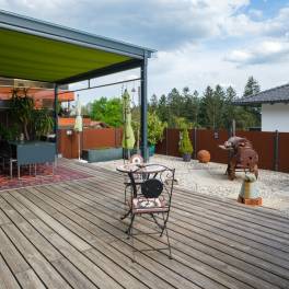 Buiten nodigt een ruim terras je uit om te genieten van de vredige sfeer en het schilderachtige uitzicht. Met een carport en twee extra parkeerplaatsen is gemak nooit ver weg. Daarnaast biedt een tweede klein appartement voldoende ruimte voor bezoekende gasten of oudere tieners.