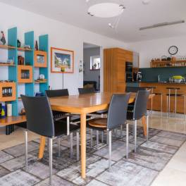 Het hart van het huis ligt in de ruime woonkamer en de prachtige designkeuken, perfecte plekken voor sociale bijeenkomsten en culinaire hoogstandjes. Vanaf hier kun je genieten van een adembenemend uitzicht op de majestueuze Mittagskogel, die de perfecte achtergrond vormt voor onvergetelijke momenten.