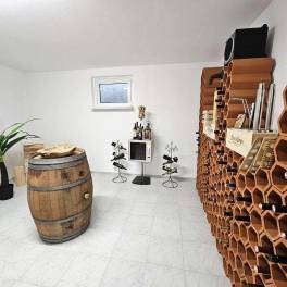 De kelderverdieping heeft ook veel te bieden. De trap is afgewerkt met graniet, en alle ruimtes zijn betegeld. Hier draait alles om fitness en wellness – een sportruimte, een saunaruimte met geïntegreerde sauna (stoombad en Finse sauna) en een douche zorgen voor veel ontspanning. Er is een stijlvolle wijnkelder – met eigen wijnstokken in de tuin – evenals opslagruimtes, een werkplaats en een technische ruimte. De kelder is een interessante uitbreiding van de woonoppervlakte.