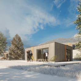 Enzian – Deze vakantiewoning van 8 meter lang, 5,8 meter breed en 3,4 meter hoog oogt en voelt bij de eerste indruk al als thuis. De kleur antraciet versterkt de kwaliteitsrijke uitstraling van deze 4-persoons vakantiewoning nog meer, net als de houtlookelementen die aansluiten bij de bosrijke omgeving. Het terras, waar u vanuit de living zo opstapt dankzij de schuifdeuren, staat verder garant voor een mooi uitzicht over de Ossiacher See en de omringende bergflanken. Dit terras, dat rondom de vakantiewoning wordt gebouwd, is gemaakt van geïmpregneerd dennenhout, net als het hekwerk rondom. Het terras heeft een grote overkapping, waardoor u hier altijd droog zit.