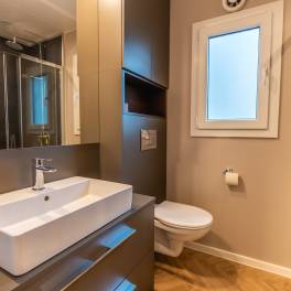 Qua interieur is de voornaamste blikvanger de master bedroom die niet alleen ruim is, maar ook verrijkt is met twee kasten naast elke zijde van het tweepersoonsbed. Hangkasten, een spiegel en haakjes om de jas op te hangen vergroten het comfort nog meer. Een schuifdeur verschaft bovendien rechtstreeks toegang tot het terras. De tweede slaapkamer bestaat uit twee eenpersoonsbedden met daartussen een nachtkastje. Een kledingkast, hangkasten en kledinghaakjes kleuren deze ruimte verder in.