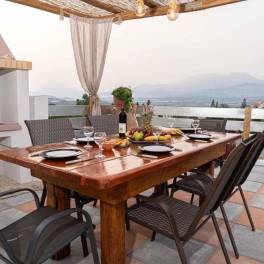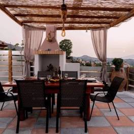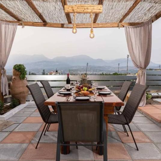 Een terras van 20 m² met een geweldig uitzicht op de Mesara-vlakte.