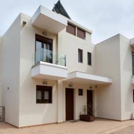 Op de begane grond is er een ruime woonkamer met eetkamer, keuken en 1 toilet. Grote beglazing geeft het huis zijn karakter, prachtig vrij uitzicht op de zee en de bergen. Een interne trap leidt naar de 1e verdieping.