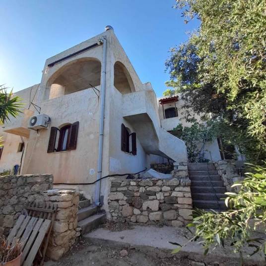 Te koop is een uniek complex van 4 appartementen met vrij uitzicht op de Libische Zee en op slechts 100 meter van de prachtige stranden in de omgeving.Het bestaat uit 2 ruime appartementen op de bovenverdieping, elk 64 m² met een open haard, en twee kleinere appartementen op de begane grond, elk 44 m².Het totale perceel is 3.700 m² groot en heeft 250 olijfbomen en diverse fruitbomen. Een paradijs direct aan het strand. Gratis toegang tot het aangrenzende zandstrand.Het is geschikt voor zowel professioneel als residentieel gebruik.Ingang direct vanaf de provinciale weg Ierapetra – Sitia.