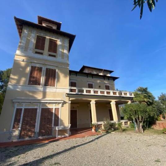 Appartement op de begane grond in een klassieke villa omgeven door een park van 6000 m² met eeuwenoude bomen en planten, met een groot zwembad met ligstoelen en parasols, op slechts 1,8 km van zee.