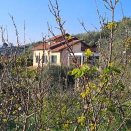 Tuin met terrassen en fruitbomen en overal uitzicht op zee. Bij het huis kan gemakkelijk een zwembad worden aangelegd. Het terrein beschikt over voldoende bouwquota om een aanbouw aan het huis te kunnen realiseren.