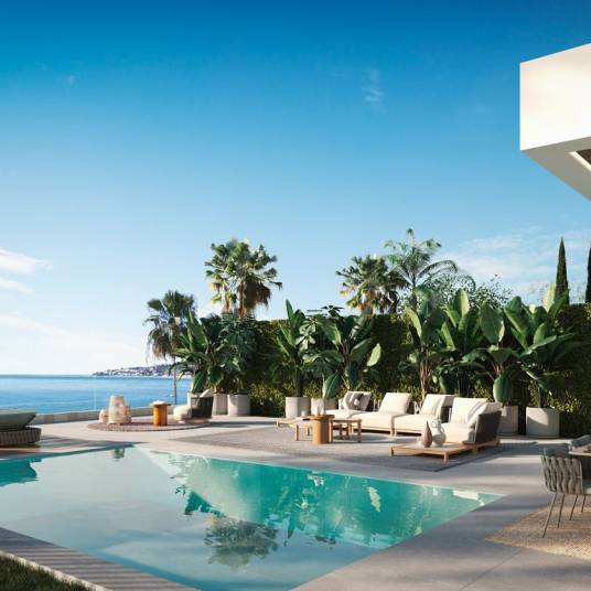 These modern and elegant villas are located in the exclusive Las Farolas Urbanisation of Mijas Costa, ideally positioned for golf enthusiasts and those seeking the Mediterranean lifestyle. The development consists of just three villas, each offering spectacular sea views and built to the highest specifications.The ground floor boasts a spacious open-plan living and dining area that flows seamlessly to the outdoor spaces, which include a terrace, garden, and private pool. The fully fitted open-plan kitchen is thoughtfully integrated into the living area, enhancing the sense of space and light. This level also includes one bedroom and a bathroom.Upstairs, there are two additional en-suite bedrooms, including the luxurious main suite with breathtaking sea views and a walk-in wardrobe. All three bedrooms open onto a terrace, perfect for enjoying the surroundings.A generous rooftop terrace crowns the property, offering panoramic views of the sea and surrounding landscape — ideal for relaxing or entertaining.The basement level features a fourth en-suite bedroom, a laundry room, and a versatile multi-purpose room that can serve as a gym, cinema, or extra living space. The villas also include a private garage with space for up to two cars.For added comfort and convenience, the villas are equipped with underfloor heating and a lift serving nearly every floor.Completion date January 2027Prices from € 1,635,000 – € 1,690,000Photos, views and layout may vary and are for illustrative purposes only