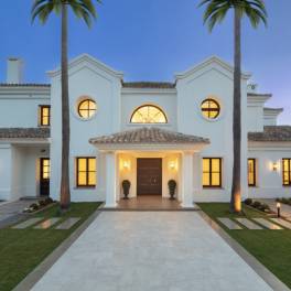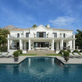 Villa Sunrise is een prachtige gezinswoning gelegen in de prestigieuze en beveiligde gemeenschap van Sierra Blanca, hoog boven de beroemde Golden Mile van Marbella. Deze uitzonderlijke villa, ontworpen in een tijdloze klassieke stijl, ligt op een ruime zuidgericht perceel van meer dan 2.000 m² en biedt adembenemende panoramische uitzichten over de Middellandse Zee en de omliggende heuvels.