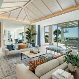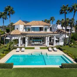 In Marbella staat een uitzonderlijke villa die moderne elegantie combineert met tijdloos Andalusisch karakter. Volledig gerenoveerd in 2022 biedt deze woning van drie verdiepingen volledige privacy en uitstekende verbindingen met de belangrijkste voorzieningen van de Costa del Sol. Met panoramisch uitzicht op de Middellandse Zee, de bergen en het privézwembad is de villa ontworpen voor wie comfort en verfijning zoekt. De woning beschikt over zeven ruime slaapkamers, elk met een eigen badkamer en suite, wat maximale privacy biedt. Het interieur wordt gekenmerkt door gepolijste marmeren vloeren, warme houten details en eigentijds meubilair dat de architectuur benadrukt. De grote woon- en eetkamer sluit naadloos aan op het buitengedeelte, terwijl de designkeuken met Danespan-apparatuur en maatwerkafwerking zowel stijlvol als praktisch is. Het gelijkvloers komt uit op een ruim terras met zwembad en BBQ, ideaal voor ontspanning of sociale bijeenkomsten. Dankzij de zuidoostelijke oriëntatie profiteren alle niveaus van natuurlijk licht en een vrij uitzicht. Praktische voorzieningen zijn een afgesloten garage voor twee auto’s, extra opslagruimte, alarmsysteem en dubbele beglazing. Dichtbij internationale scholen, winkelgebieden, golfbanen en stranden is deze villa een unieke kans om luxe wonen in Marbella te beleven.