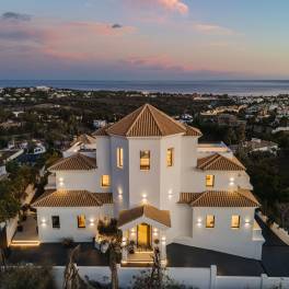 In Marbella ligt een uitzonderlijk familiehuis vlak bij het beroemde Villa Padierna Resort, topgolfbanen en luxe voorzieningen. Deze klassiek-moderne villa beslaat vier verdiepingen en is ontworpen om luxe, privacy en comfort te combineren. De woning beschikt over zes ruime slaapkamers, zeven badkamers, drie zwembaden, een bioscoopzaal, kantoorruimten, spa, fitnessruimte, wijnkelder en een spectaculair dakterras met panoramisch uitzicht. Alle verdiepingen zijn bereikbaar via een privé-lift. Bij de entree verwelkomt een elegante wenteltrap met kroonluchter en zeezicht. De begane grond omvat een open woonkamer, formele eetkamer en moderne keuken met kookeiland, evenals een bijkeuken, kantoor, gastenverblijf en multifunctionele ruimte. Grote schuifpuien leiden naar het buitengedeelte met ruime terrassen, buitenkeuken, eethoek en een infinity pool. De eerste verdieping beschikt over de mastersuite met vrijstaand bad, kleedkamer en terras, naast twee extra slaapkamers en suite. Het dakterras is een exclusieve zone met dompelbad, zonneterras, buitenkeuken en eetgedeelte met de beste uitzichten van de Costa del Sol. De kelder biedt een wijnkelder, bioscoop, fitnessruimte, spa met binnenbad, wasruimte en garage. Een unieke kans om elegantie, functionaliteit en locatie te combineren in Marbella.