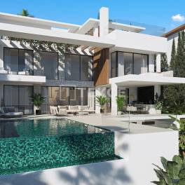 Vrijstaande Villa’s met Privéliften in een Gewilde Omgeving van EsteponaDit nieuwe project ligt in de gemeente Estepona. Estepona ligt aan de pittoreske kust van de Costa del Sol in Zuid-Spanje en heeft een gevarieerd aanbod van woningen. Met zijn prachtige stranden, milde klimaat het hele jaar door, charmante oude stad en weelderige platteland, biedt Estepona bewoners een rustig toevluchtsoord met gemakkelijke toegang tot geavanceerde voorzieningen om een comfortabele en plezierige levensstijl te garanderen.De villa’s te koop in Estepona Malaga liggen in een bevoorrechte woonwijk van Estepona, net boven de zogenaamde "New Golden Mile", naast de Golf & Country Club, een internationale school en een scala aan lokale dagelijkse voorzieningen en diensten. Het project ligt op 2,5 km van de zandstranden en op 2 km van de afrit van de snelweg, waardoor reizen eenvoudig en gemakkelijk is. Het centrum van Estepona ligt op 12 km van het complex, Puerto Banus en Marbella op 14 km. Het duurt ongeveer een uur om de internationale luchthaven van Malaga te bereiken.Het project ligt in een gewild en pittoresk landschap omringd door de schoonheid van de natuur en presenteert een verzameling van twaalf elegante en exclusieve villa’s die worden gekenmerkt door modern design. Genesteld in een serene omgeving, is elke villa zorgvuldig ontworpen om zijn individuele allure uit te stralen, harmonieus versmeltend met de ongerepte natuurlijke omgeving. Elke villa staat op een privéperceel van meer dan 1000 m² en biedt een adembenemend buitenleven met uitgestrekte onoverdekte terrassen, essentieel voor het mediterrane leven, een royaal zwembad met zonneterras en een verzorgde tuin met een automatisch irrigatiesysteem.Deze luxe villa’s met privéliften beschikken over ruime, open interieurs met een afwerking van topkwaliteit. Elke villa heeft zijn eigen individuele karakter, waardoor elke bewoner een ervaring op maat krijgt. In de ontwerpbenadering staat het licht centraal als zowel de belangrijkste focus als een onmisbaar element. De ontwikkelaar heeft zorgvuldig grote ramen geplaatst en dubbelhoge ruimten ingebouwd om het gebruik van natuurlijk licht te optimaliseren en het gevoel van ruimtelijkheid te vergroten. AGP-00896