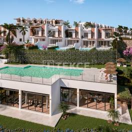 Spectaculaire huizen met prachtig uitzicht in de natuurlijke omgeving van MijasHet project ligt in de gemeente Mijas. Dit uitgestrekte kosmopolitische gebied is uitgegroeid tot een van de trendy bestemmingen aan de Costa del Sol vanwege het milde klimaat, het schilderachtige gemengde landschap met zandstranden en bergen, de verscheidenheid aan entertainmentopties en sportactiviteiten, en de aantrekkelijke vastgoedopties. Mijas met zijn uitstekende wegverbindingen en ontwikkelde infrastructuur is een geweldige plek voor een permanente verblijfplaats of een vakantiehuis.Dit project ligt in de bevoorrechte gemeenschap El Chaparral, bekend om zijn lage dichtheid, weelderig groen, dennenbossen en de gerenommeerde Golf Club met een van de beste driving ranges aan de Costa del Sol. De ligging van het project is strategisch: op 1 minuut rijden van de afrit van de snelweg, op een steenworp afstand van de golfclub, 700 meter van het strand en 3 kilometer van het mooie dorp La Cala met alle mogelijke voorzieningen en diensten tot je beschikking. Het ligt ook op 25 km van het centrum van Marbella, 35 km van Puerto Banus en 30 km van de internationale luchthaven van Malaga.Het is een project van verfijnde herenhuizen ontworpen met enkele traditionele Andalusische stijl accenten en lijnen en vermengd met de natuur. Volgens de trend van de relaxte mediterrane levensstijl is er speciale aandacht besteed aan de inrichting van de gemeenschappelijke ruimten in dit omheinde complex om ervoor te zorgen dat alles binnen handbereik is. Voorzieningen ter plaatse zijn onder andere grote zwembaden met een zonnedek met uitzicht op de zee en de golfbaan, BBQ en ontspanningsruimte, aangelegde tuinen, een volledig uitgeruste fitnessruimte, een wellnessruimte met een sauna en een Turks bad, en een Social Club met co-working ruimte.De huizen te koop in Mijas liggen op het zuiden met grote ramen om de ruime en gezellige interieurs te vullen met natuurlijk licht. Slim verdeelde binnenruimtes geven een gevoel van vrijheid dat wordt versterkt door royale overdekte en niet overdekte terrassen en privétuinen. De designkeukens zijn uitgerust met merkapparatuur. Neem contact met ons op voor alle voordelen die een 5-jarig lidmaatschap van de Golf Club te bieden heeft (het recht om de club te gebruiken, onbeperkt golfen, buggy, inter-club en sociale wedstrijden, toegang tot clubfaciliteiten alleen voor leden, kortingen, enz.) AGP-00804