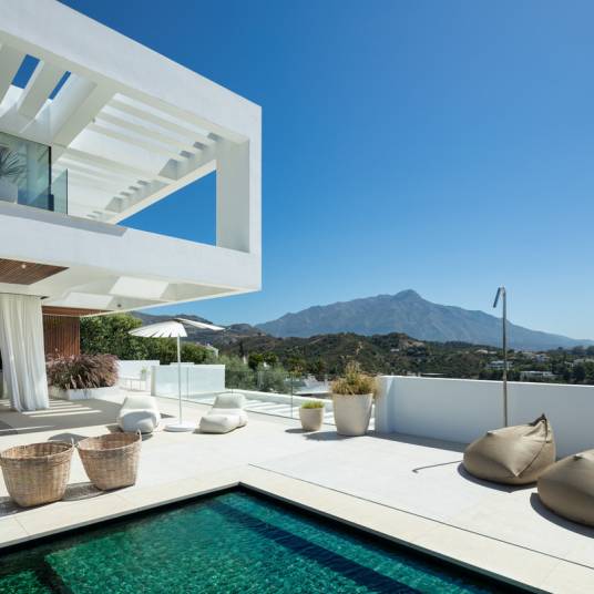 Nestled in the serene enclave of La Quinta, this contemporary villa, built in 2021, is designed to capture the essence of luxury living. South-facing, it offers stunning, sweeping views from the impressive La Concha Mountain to the Mediterranean Sea and even Gibraltar, making every sunrise and sunset a picture of peace and beauty.