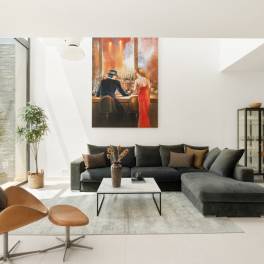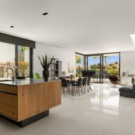 This stunning semi-detached villa offers panoramic views of the Mediterranean Sea and the lush Cabopino Golf Course, set within the exclusive gated community of Green Hill Marbella. Surrounded by rolling Andalusian hills, the home blends sleek modern design with natural surroundings, creating a private oasis of luxury and tranquility.