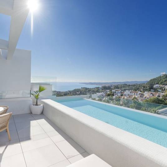 Discover this spectacular contemporary villa with panoramic views of the Mediterranean Sea, Fuengirola Bay and the mountains. Located in one of the most sought-after areas of Benalmádena, it offers a unique lifestyle where elegance, privacy and comfort come together perfectly.