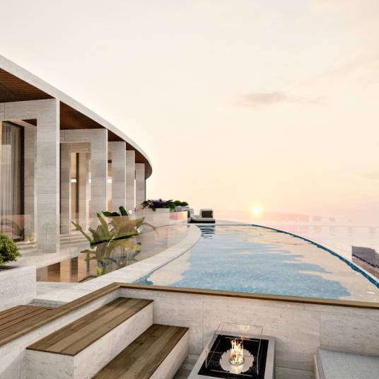 The spacious and luxurious exterior spaces have been designed for maximum enjoyment. Several terraces stretch the length of the property, providing perfect areas for al fresco dining or relaxing while taking in the spectacular surroundings. The private terrace is home to an infinity swimming pool including a cozy den with outside fireplace.