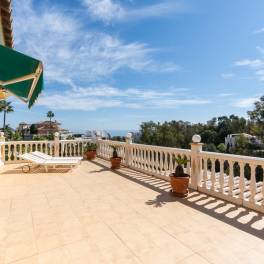 Detached villa located in Torrenueva and within walking distance to the beach, restaurants and shops. The villa is distributed over two floors. On the first floor the hall leads to a spacious living room with a fireplace, open plan kitchen, dining room, with access to a 20m2 terrace with glass curtains. 2 bedrooms with one bathroom and guest toilet. On the first floor, you will find the master bedroom, bathroom and a fabulous 40m2 terrace. The property also has a 40m2 basement and a Lock up garage plus parking for a further 3 cars. Sea views from all rooms, Gas central heating, Air-conditioning in all rooms, Heat pump for pool and Solar panels for hot water. Built to German standards. OWNER WILL NOT NEGOTIATE ON THE SELLING PRICE AND SOLD UNFURNISHED.
