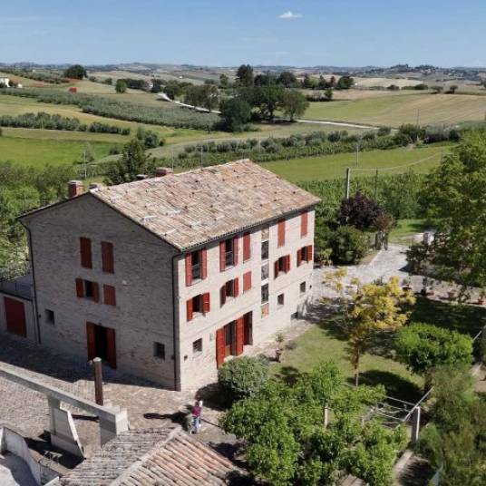 Te koop: dit prestigieuze landgoed bestaande uit een woonhuis, zwembad, diverse bijgebouwen en houtoven, met een totaaloppervlak van ca. 623 m². De woning zelf is verdeeld over 3 verdiepingen. Het erf is omheind en beslaat een oppervlak van ca. 3.000 m². Gesitueerd op een adembenemende positie in het hart van Le Marche, is de ligging van het landgoed uitzonderlijk te noemen: een perfecte balans tussen natuur, rust en landschap, met een open uitzicht dat de omgeving domineert.