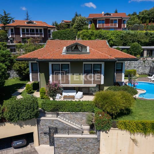 Villa met uitzicht op bos en zee in een project in Sarıyer İstanbulHet villaproject is gelegen aan de noordkant van Istanbul, in Sarıyer. Sarıyer is een van de meest rustige wijken in Istanbul, omgeven door bossen. Het project is ideaal voor degenen die willen ontsnappen aan de drukte van de stad.De vrijstaande villa te koop in İstanbul, Sarıyer met een privézwembad ligt op loopafstand van dagelijkse voorzieningen, 200 m van bushaltes, 700 m van de kust, 1 km van Şişli Hamidiye Etfal Training and Research Hospital, 4,7 km van Atatürk Urban Forest, 19 km van Beyoğlu, 23 km van Eminönü, 26 km van het Sultanahmet-plein en 39,3 km van de luchthaven van İstanbul.Het project werd voltooid in 2003. De te koop staande villa bevindt zich in het centrum van het project. Het project beschikt over binnen- en buitenzwembaden, een tennisbaan, een fitnessruimte, een speeltuin, een basketbalveld, wandelpaden en een sociale club. De vrijstaande villa heeft een grondoppervlak van 1620 m² en een nettogebruik van 500 m². De villa bestaat uit 3 verdiepingen en 5 slaapkamers.De kelder heeft een hobby-/speelkamer, kamers met badkamers, een keuken, een wasruimte en een berging. Op de begane grond bevinden zich een salon, een keuken en een wintertuin. Op de eerste verdieping bevinden zich 5 slaapkamers met elk een kleedkamer en een badkamer. Op het dak is een woonkamer met terras beschikbaar.Er is een bijgebouw in het bovenste deel van de tuin, samen met fruitbomen en een moestuin. Het pand omvat een parkeerplaats buiten en een garage met een capaciteit voor twee voertuigen. De villa beschikt over een vloerverwarming- en koelsysteem, met achteraf toegevoegde isolatie. De villa, met een prachtig uitzicht op de Bosporus, is uitgerust met een ingebouwde keukenset, een stalen deur, LED- en spotverlichting, een douchecabine, laminaat- en keramische vloeren, PVC-ramen, aardgas en een satellietsysteem. IST-01579