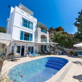 Moderne Villa met 4 Slaapkamers en Panoramisch Uitzicht op Zee in Kalkan, KaşKalkan, gelegen in Kaş, Antalya, is een van de populairste vakantiebestemmingen aan de Turkse Middellandse Zee, met zijn kristalheldere turquoise zee, historische stenen huizen en indrukwekkende natuur. Met zijn boutique-stranden, luxe villa-opties en jachthaven wordt het vaak gekozen voor zowel vakanties als permanent wonen. Het heeft een rustige sfeer en een vredige levensstijl. Als onderdeel van de historische Lycian Way is het gebied ideaal voor natuurwandelingen, duiken en watersporten. De villa te koop in Kalkan, Turkije ligt op slechts 150 meter van de zee en het strand, 2 km van het centrum van Kalkan, 7 km van Kaputaş Beach, 17 km van de antieke stad Patara, 27 km van het Staatsziekenhuis van Kaş dat uitgebreide gezondheidsdiensten biedt, en tenslotte 120 km van de luchthaven Dalaman, de dichtstbijzijnde luchthaven.De villa heeft een panoramisch zeezicht, een groot verwarmd zwembad en een ruim zonneterras. Met zijn grote stenen zitgedeelte, volledig uitgeruste terraskeuken met barbecue en zonsondergangzicht is het ideaal voor zowel wonen als investeringen. Daarnaast vergroten de op afstand bedienbare afgesloten garage, het beveiligingscamerasysteem, de watertank met reservecapaciteit, bergruimte en volledig gerenoveerde meubels het comfort.Deze ruime villa met 4 slaapkamers beschikt over twee afzonderlijke woongedeelten. Het hoofdgedeelte omvat een moderne open keuken, een lichte woonkamer, een eetgedeelte met uitzicht en drie slaapkamers met en-suite badkamers. De onafhankelijke unit heeft een indeling met 1 slaapkamer. Gelegen op de benedenverdieping valt het 1-slaapkamerappartement binnen de villa op door zijn stijlvolle meubels en moderne keuken. De aparte ingang biedt tevens een hoog verhuurpotentieel. AYT-04798