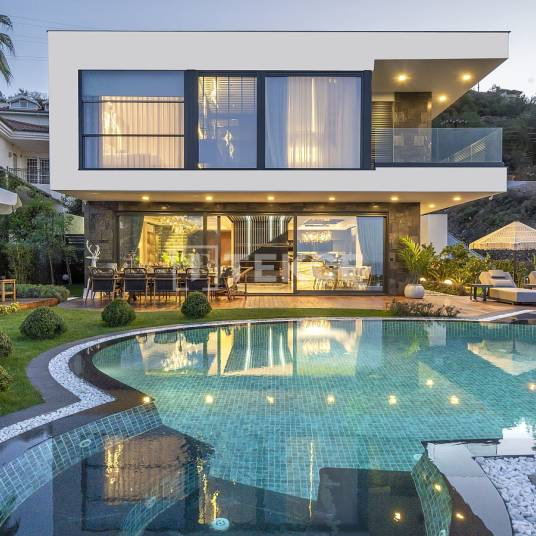 Villa met Stads- en Zeezicht en Slimme Woningtechnologie in AlanyaAlanya is een van de meest gewilde vakantiebestemmingen van Antalya, bekend om zijn natuurlijke schoonheid, aangename klimaat en hoogwaardige levensstijl. Gelegen op een centrale locatie is de wijk Bektaş een elite buurt die een breed scala aan dagelijkse voorzieningen en sociale faciliteiten biedt. Deze regio wordt zowel voor vakantiehuizen als voor permanente bewoning sterk geprefereerd. De snelle ontwikkeling heeft het gebied tot een belangrijk aandachtspunt voor investeerders gemaakt. Bektaş is vooral populair voor villaprojecten en biedt luxueus wonen met een prachtig panoramisch uitzicht over de stad.De villa te koop in Alanya ligt op 2,6 km van het centrum van Alanya, 3 km van de zee en het strand, 3,2 km van het beroemde Cleopatra-strand, 3,5 km van het Alanyum winkelcentrum, 4 km van het Kasteel van Alanya, 4,5 km van het Alanya Education and Research Hospital, 9 km van de Dim-grot, 39 km van de luchthaven Gazipaşa en 114 km van de luchthaven van Antalya.De villa ligt op een perceel van 580 m² en beschikt over een privé tuin, een buiten-eetgedeelte, een BBQ-ruimte, een douchegedeelte en een vuurplaats, wat een ideale omgeving biedt voor buitenleven en entertainment. De woning beschikt ook over binnen- en buitenparkeerplaatsen, een privézwembad, een generator, slimme woningtechnologie en vloerverwarming, wat het hele jaar door comfort en gemak garandeert.De villa is uitgerust met luxe meubilair, behang, keramische vloeren, houten wanddecoratie, LED-verlichting voor de hoge plafonds, PVC-ramen voor warmte- en geluidsisolatie, een eettafel voor 10 personen, stoelen, ligbedden, een plafondverlichtingssysteem, speciaal ontworpen ruimtes, een elektrische open haard in de tuin, een set witgoed, een tv met tv-meubel, keramische en glazen decoratieve materialen, luxe kroonluchters, tenten voor de tuin en het zwembad, elektrische jaloezieën, een kleedkamer en tuinmeubilair rond de vuurplaats. AYT-04914