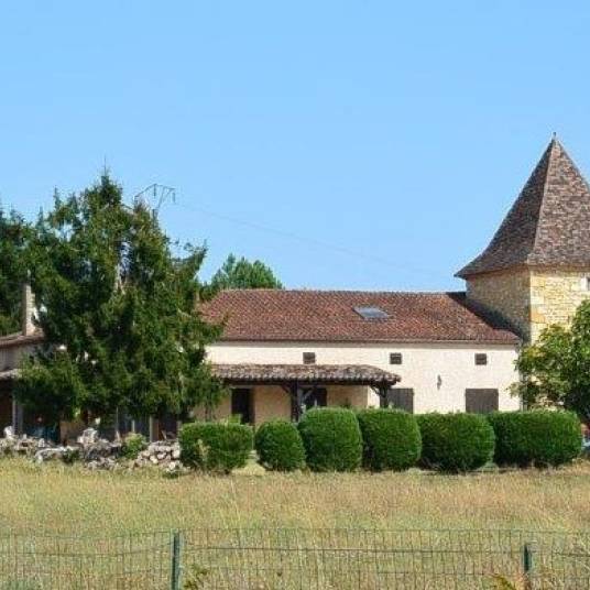 Natuurstenen landhuis uit 1989 met toren, gastenverblijf, garage en zwembad op ca. 1 hectare grond. Het woonhuis heeft ca. 140 m² woonoppervlak, grotendeels op één niveau.