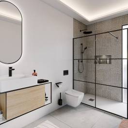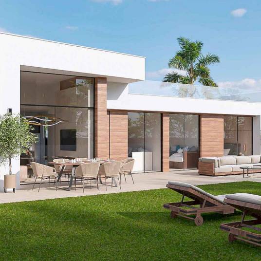 Residencial Oriol bestaat uit luxe villa’s in moderne stijl met 3 slaapkamers en 2 badkamers, verdeeld over één verdieping, op grote kavels in Condado de Alhama Golf, naast het winkelcentrum Al-Kassar.