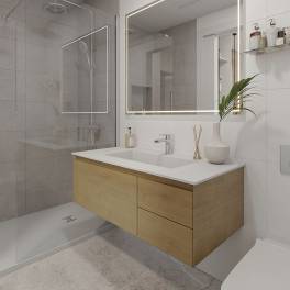 Alle villa’s hebben bijna 120m2 woonoppervlak plus privétuinen van meer dan 100m2, met off-road parking op het perceel, een buitenberging en een privézwembad van 6m x 3m met zonneplateau.
