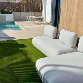 Met trots presenteren we deze prachtige "one level" villa’s op Mosa/Altaona. Kersverse, zonnige huizen ontworpen met een levensstijl in het achterhoofd. Ze hebben 2 of 3 slaapkamers en 2 badkamers. * Ze zijn allemaal in een plan. * Ze liggen allemaal op het zuiden. * Tegels en keukenbladen etc. Worden geleverd door Porcelanosa.* Ze hebben allemaal 18 m2 privé zwembad.* Alle witgoed is inbegrepen.* Verwarmde vloeren in badkamers.* Elektrische rolluiken in alle slaapkamers.* LED-verlichting in alle kamers.* Pre-installatie voor airconditioning. Dit model heeft 2 slaapkamers, 2 badkamers op een perceel van 300 m2. De keuken/eetkamer/woonkamer is 39 m2 en heeft grote glazen deuren naar de tuin/het zwembad. Alle witgoed is inbegrepen in de keuken. Vanuit de keuken is er toegang tot de ruime bijkeuken. De ouderslaapkamer is 16 m2 en heeft een inloopkast die leidt naar de mooie badkamer met dubbele wastafel en inloopdouche. Mooie grote glazen ruimte en glazen deuren naar de tuin/poll gebied. De andere slaapkamer heeft ook een goede afmeting (12 m2) en is voorzien van inbouwkasten. De tweede badkamer heeft ook een dubbele wastafel en een grote inloopdouche. Zowel de zitkamer als de slaapkamers hebben toegang tot de tuin. Het verharde deel, met het zwembad is 107 m2, het zwembad is 18 m2. Er is ook een terras aan de andere kant van het huis. De verwachte bouwtijd is 10-12 maanden, de showvilla zou eind 2023/begin 2024 klaar moeten zijn. Aangezien deze ontwikkelaar al meer dan 30 jaar actief is, kunnen we andere showhuizen laten zien die al gebouwd zijn, zodat je de kwaliteit en afwerking kunt zien. Interieurfoto’s zijn van andere eerdere ontwikkelingen.Altaona Golf and Country Village is centraal gelegen met gemakkelijke toegang tot het snelwegennet, dus vrijwel alles is binnen handbereik. Altaona Golf is een mooie 18-holes golfbaan in een schitterende omgeving. Er is ook een heel mooi nieuw clubhuis met alle faciliteiten, waaronder een pro-shop, restaurant en bar. Het commerciële centrum heeft ook restaurants en bars enz. De 300 oude boerderij "Parador" zal naar verwachting eind 2024 gerenoveerd worden en nog meer restaurants en faciliteiten bieden. Vliegvelden: Murcia International 8 min, Alicante 50 minSteden: Murcia stad 10 min, Cartagena 20 minStranden: Mar Menor 22 min, Middellandse Zee 25 min.Scholen: Internationale en lokale 10-15 minuten.Overig: Selectie van supermarkten 10 min, tal van restaurants 5-10 min. We willen je graag kennis laten maken met dit geweldige project en de al even prachtige omgeving. Voor meer informatie kunt u contact opnemen met Soraya op